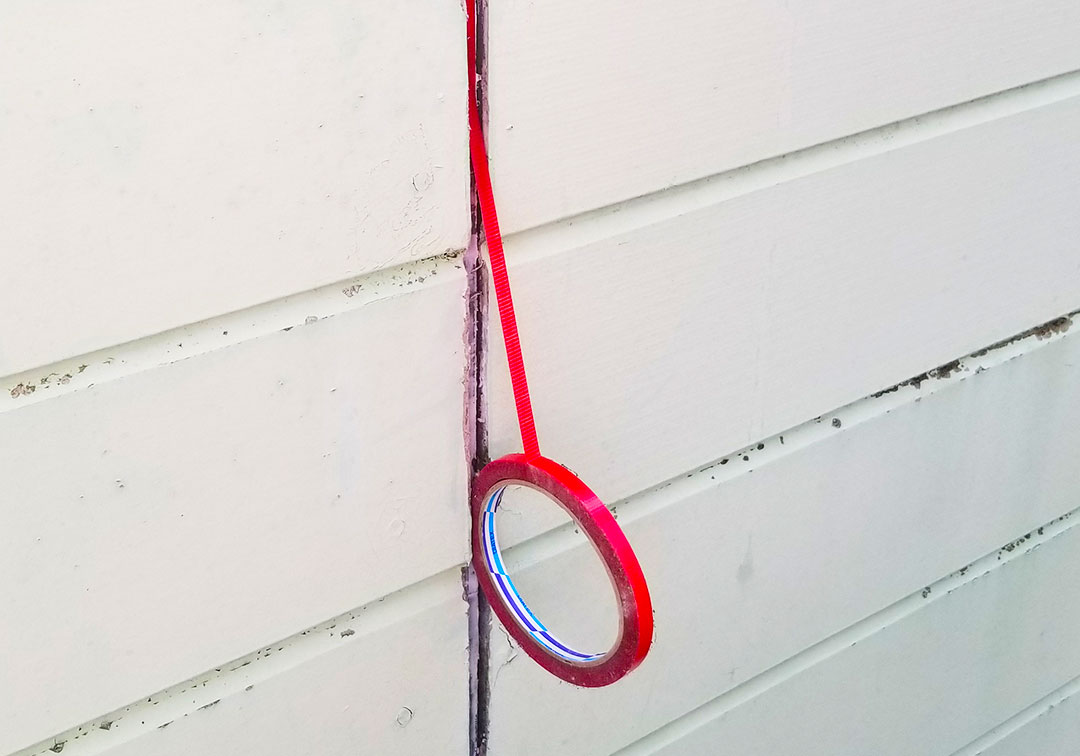 建物によっては既存のシーリングが剥がれたり、元々無かったりします。外壁の揺れに追従するために、シーリングを二面接着にして、切れにくくする為の物です。